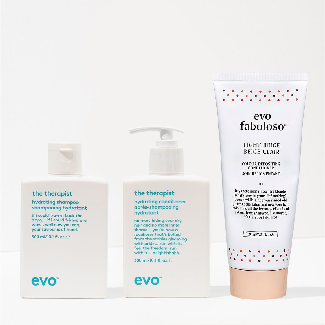 if you're ready to upgrade your colour maintenance routine, grab this moisture-rich shampoo, conditioner and light beige colour depositing conditioner trio to cleanse, hydrate and strengthen, while refreshing and reviving colour-treated hair.