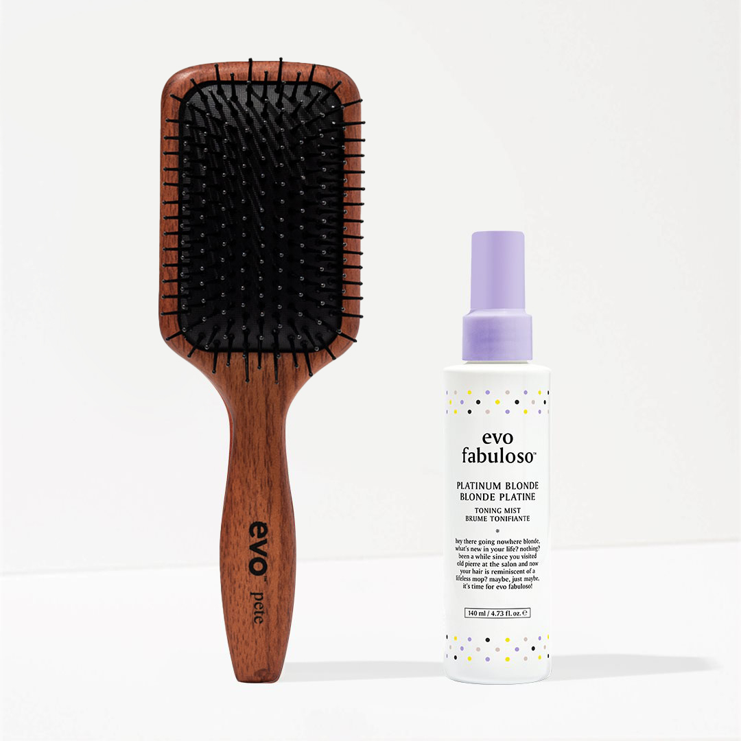 an ionic paddle brush and blonde toning heat protection spray so you can tidy your locks and keep them well protected.