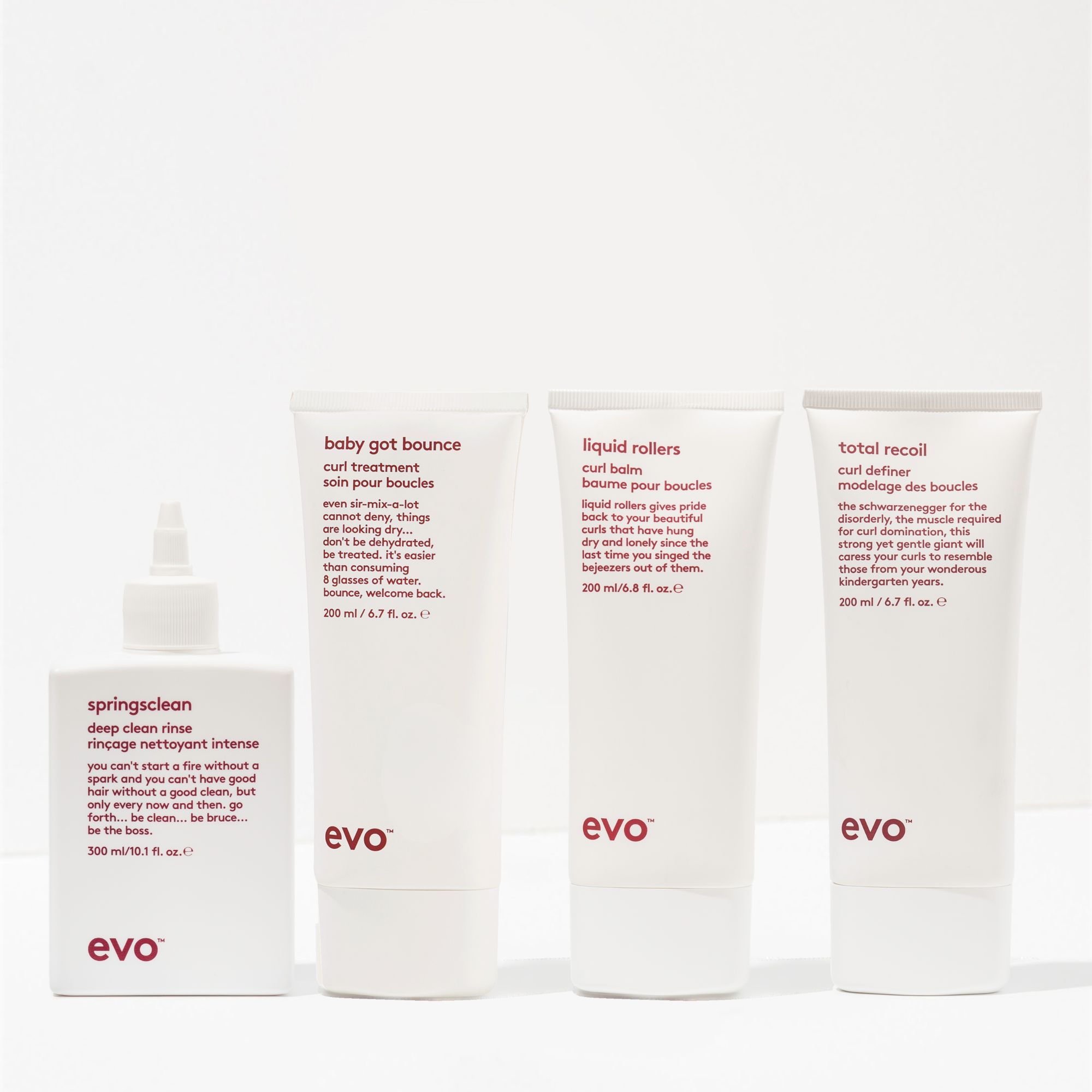 a deep clean rinse, treatment, styling balm and curl defining cream that work together to create the ultimate routine for curly hair types.