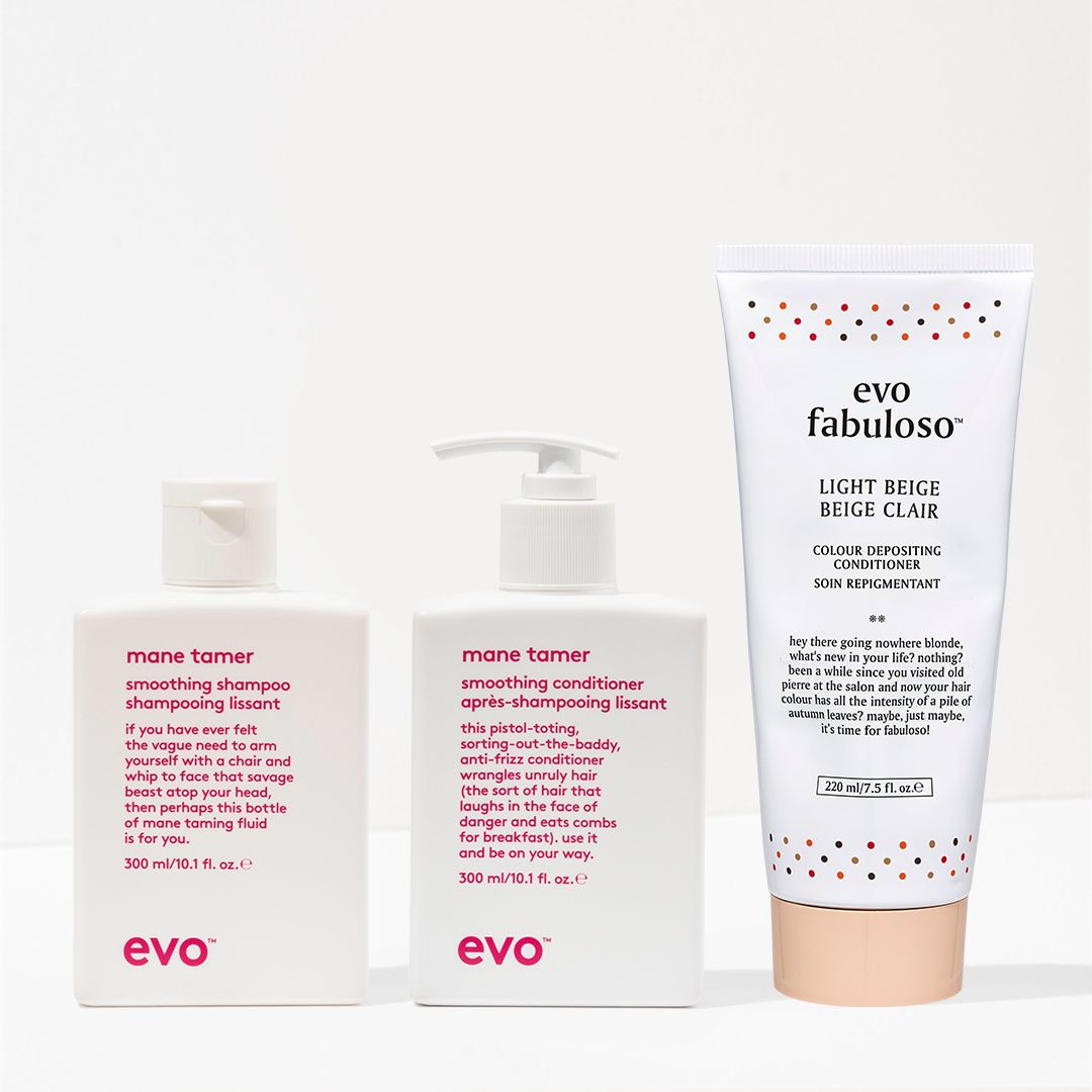 if you're ready to upgrade your colour maintenance routine, grab this smoothing shampoo, conditioner and light beige color depositing conditioner trio to cleanse, hydrate and strengthen, while refreshing and reviving color-treated hair.