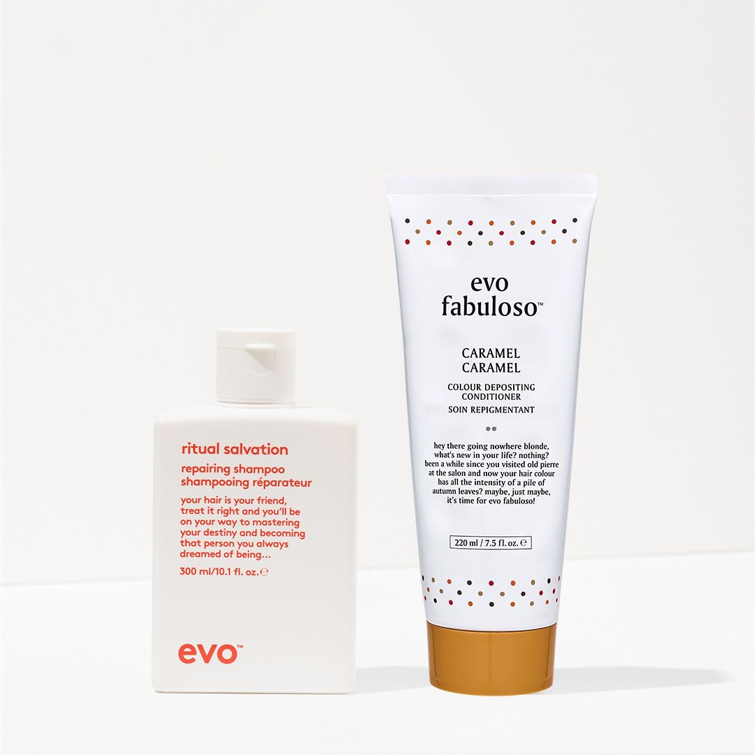 got a color-treated mane that's starting to feel a little drab? grab this protein-rich shampoo and caramel colour depositing conditioner duo to cleanse, repair and strengthen, while refreshing and reviving color-treated hair.