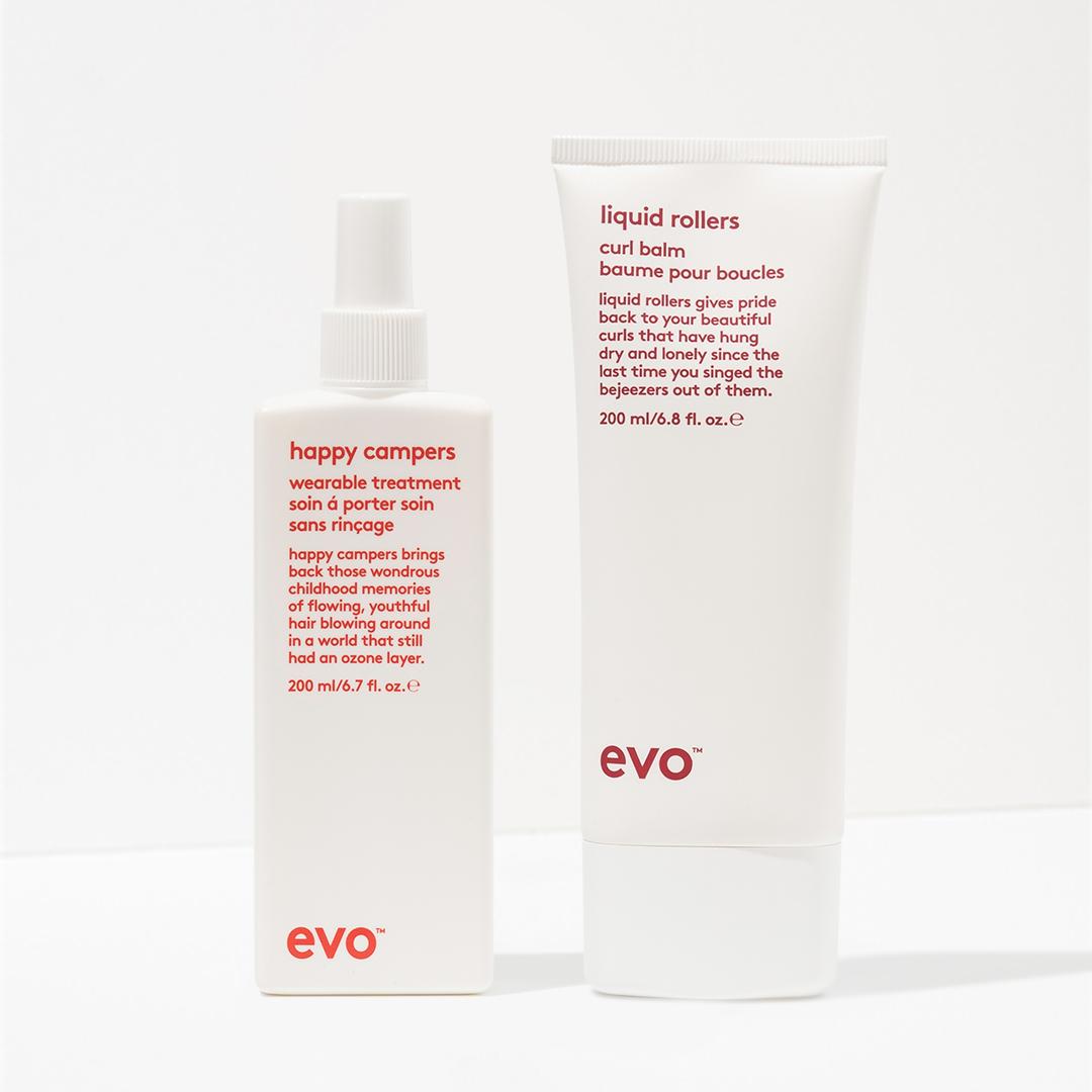 happy campers wearable treatment: Aqua, Cyclomethicone, Isopropyl Myristate, Cetearyl Alcohol, Parfum, Phenoxyethanol, Pvp, Amodimethicone, Panthenol, Behentrimonium Methosulfate, Cetrimonium Chloride, Ethylhexyl Methoxycinnamate, Hyrolyzed Quinoa, Methyl Gluceth-20, Quaternium-80, Simmondsia Chinensis (Jojoba Oil) Seed Oil, Benzoic Acid, Benzophenone-4, Dehydroacetic Acid, Trideceth – 15, Trideceth -3, Butylene Glycol, Vp/Dmapa Acrylates Copolymer, Ethylhexylglycerin, Alcohol, Potassium Sorbate, Acetamide Mea, Benzalkonium Chloride, Linalool, Limonene, Citronellol. liquid rollers curl balm: Aqua, Cetyl Alcohol, Cetearyl Alcohol, Behentrimonium Chloride,Pvp, Isopropyl Myristate, Stearamidopropyl Dimethylamine, Cyclomethicone, Cyclopentasiloxane, Peg-20 Stearate, Phenoxyethanol, Methyl Gluceth-20, Parfum, Isoproyl Alcohol, Phenyl Trimethicone, Dimethiconol, Polyquaternium-28, Citric Acid, Panthenol, Benzoic Acid, Hydrolyzed Quinoa, Dehydroacetic Acid, Butylene Glycol, Ethylhexylglycerin, Potassium Sorbate, Amyl Cinnamal, Linalool, Benzyl Salicylate, Citronellol, Geraniol, Limonene