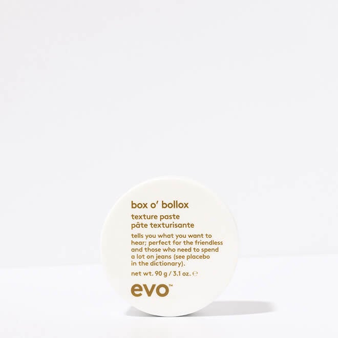 box o' bollox texture paste creates a rough texture with an extra-strong hold. this hair styling paste works best on dry or towel-dried hair, and contains ozokerite to create a matte finish. beeswax is used to achieve an extra-strong yet flexible hold, for ultimate control. box o' bollox texture paste is part of the style family; offering styling and finishing options for all hair types.